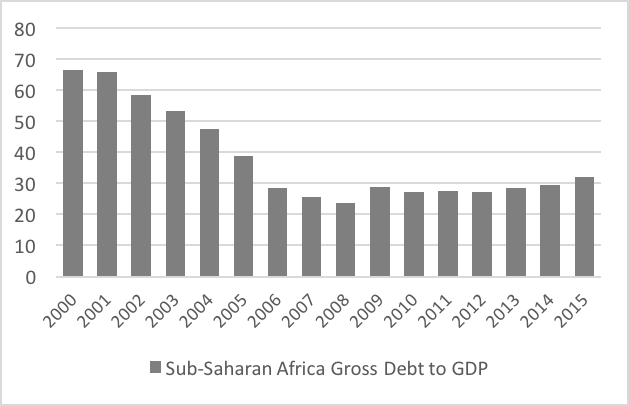 Post independent Sub-Saharan Africa after years of economic mismanagement stemming from political power struggles found itself saddled with immense debt that requiredsome relief. The sought after debt relief came through the Heavily Indebted Poor Countries Initiative (HIPC) lunched by the IMF and World Bank in 1996. The programme aimed at eliminating the burden of debt rescheduling of Low Income Countries (LICs) not eligible under the Brady Plan. The initiative targeted reducing the debt stocks of LICs to a sustainable level within a reasonable time frame. Sub-Saharan African countries constituted 84.6 per cent of these LICs. The initiative supplemented with the Multilateral Debt Relief Initiative (MDRI) in 2005 led 35 out of 39 countries through the various phases of the programme to completion. The initiative undoubtedly achieved its objectives of reducing the debt stocks and creating greater fiscal space for social spending for the identified countries. Countries that completed the programme received 100 per cent debt relief from the IMF and other creditors thereby reducing their debt stocks. However, exit from the programme did not guarantee thosecountries of long-term debt sustainability.